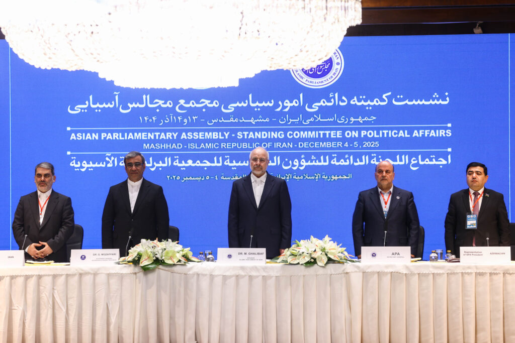 مراسم افتتاحیه نشست کمیته دائمی امور سیاسی مجمع مجالس آسیایی (APA) صبح امروز پنجشنبه ۱۳ آذر ماه ۱۴۰۴ با حضور دکتر محمدباقر قالیباف رئیس مجلس شورای اسلامی در مشهد مقدس برگزار شد.